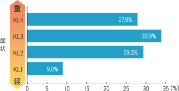 変形性膝関節症の進行度を4段階に分けた場合、初期~進行期の方が半数以上を占めています。